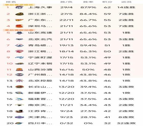 CBA最新积分榜