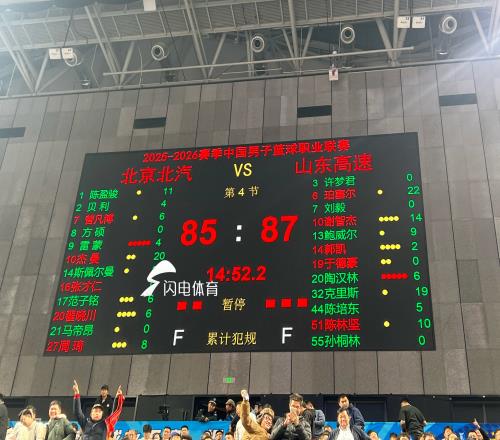 闪电体育1月9报道今晚,CBA常规赛,山东高速男篮客场对阵北京首钢,经过四节鏖战,山东高速男篮87-85绝杀北京首钢。