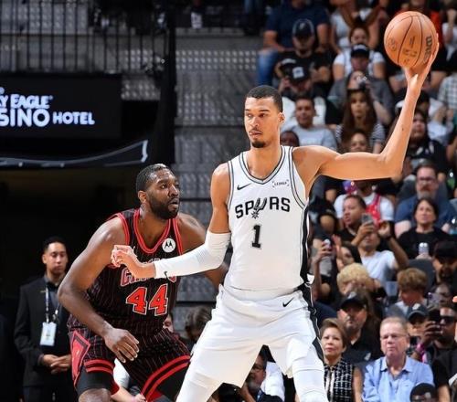 北京时间3月31日,NBA常规赛继续进行,芝加哥公牛队前往客场挑战圣安东奥马刺队。公牛队正处于3连败中,确定无缘附加赛;马刺队正处于8连胜中,他们已经锁定了西部前2,并保留着冲击西部第1的可能性。比赛上来,公牛队多点开花抢占先机,文班亚马拉满攻防统治禁区,马刺队首节取得1分领先优势。第二节,公牛队陷入得分荒,马刺队抓住机会火力全开单节爆砍35分,一举在半场结束前将分差拉大到17分。易边再战,两队疯狂对轰,马刺队一度将分差拉大到20+。末节决战,公牛队放手一搏,马刺队始终手握两位数领先优势。最终,马刺队以129-114击败公牛队。
