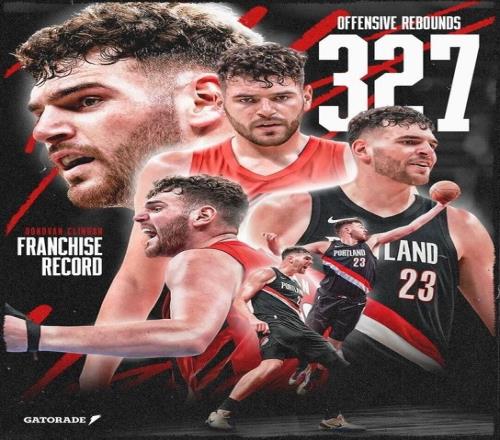赛季至今,他抢到327个进攻篮板,创队史单赛季进攻篮板新纪录。
