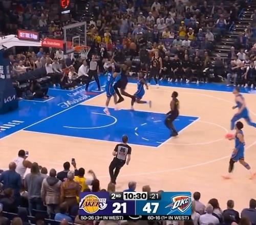 恐怖如斯!雷霆首节领先湖人23分本赛季第七次首节领先对手20+