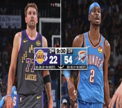 体育播报4月3日宣 雷霆主场迎战湖人,截至发稿雷霆领先30+。
