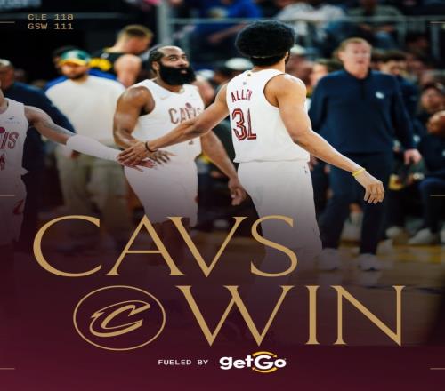 赛后骑士官方晒出本场赢球海报,哈登和贾勒特·阿伦登上封面。