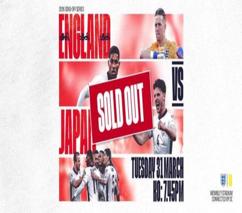 3月30日,温布利球场官网更新公告显示,英格兰代表队将于北京时间4月1日凌晨2:45在温布利球场迎战日本队的比赛门票已售罄。